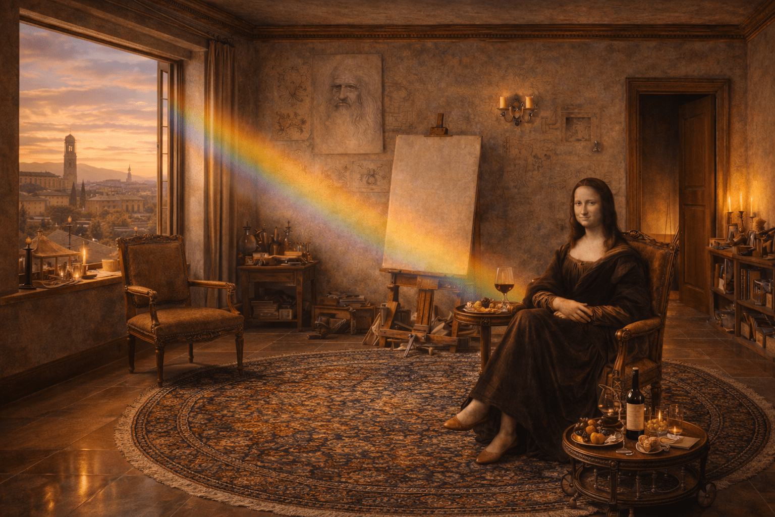 La Gioconda visiting her friend Leonardo, reimagined.